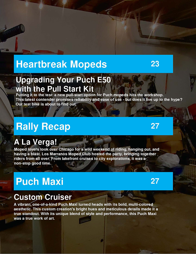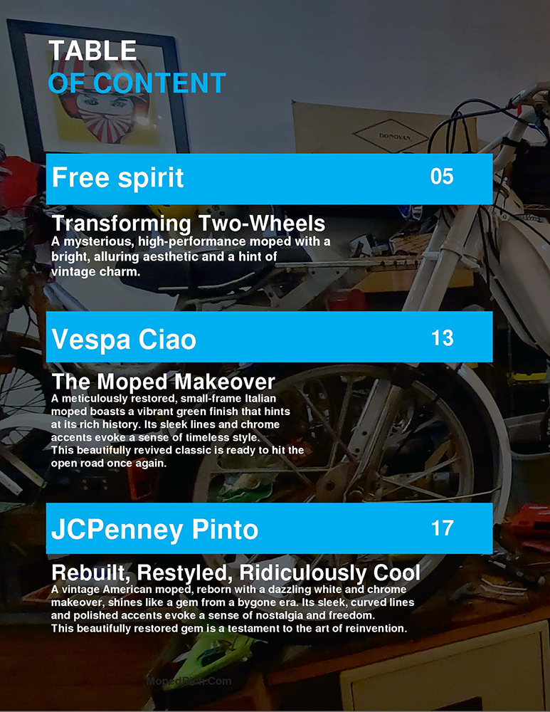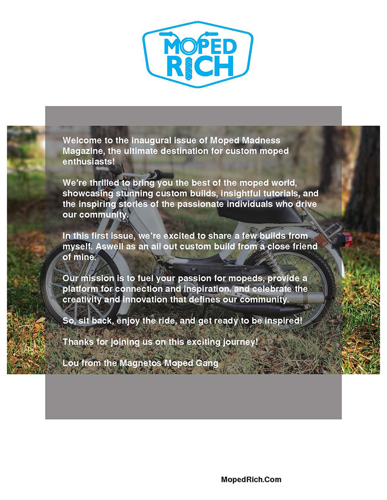 Therefore, a massive thank you to the community that made this dream a reality. I’m thrilled to announce a special treat. I’m sharing Issue 1 of Moped Madness Magazine online! This issue marks the beginning of it all, and it holds a special place in my heart.