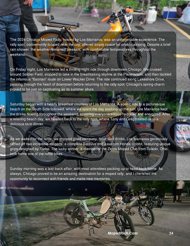 Now, here we are, nearly one year into this incredible journey! Consequently, creating Moped Madness Magazine has been an absolute blast. We’ve shared stories, highlighted unique builders and their mopeds, and connected a passionate community through the printed page. Support and engagement—from the builders and riders to the moped-loving readers—have made this entire experience rewarding and fun. I truly appreciate the community.